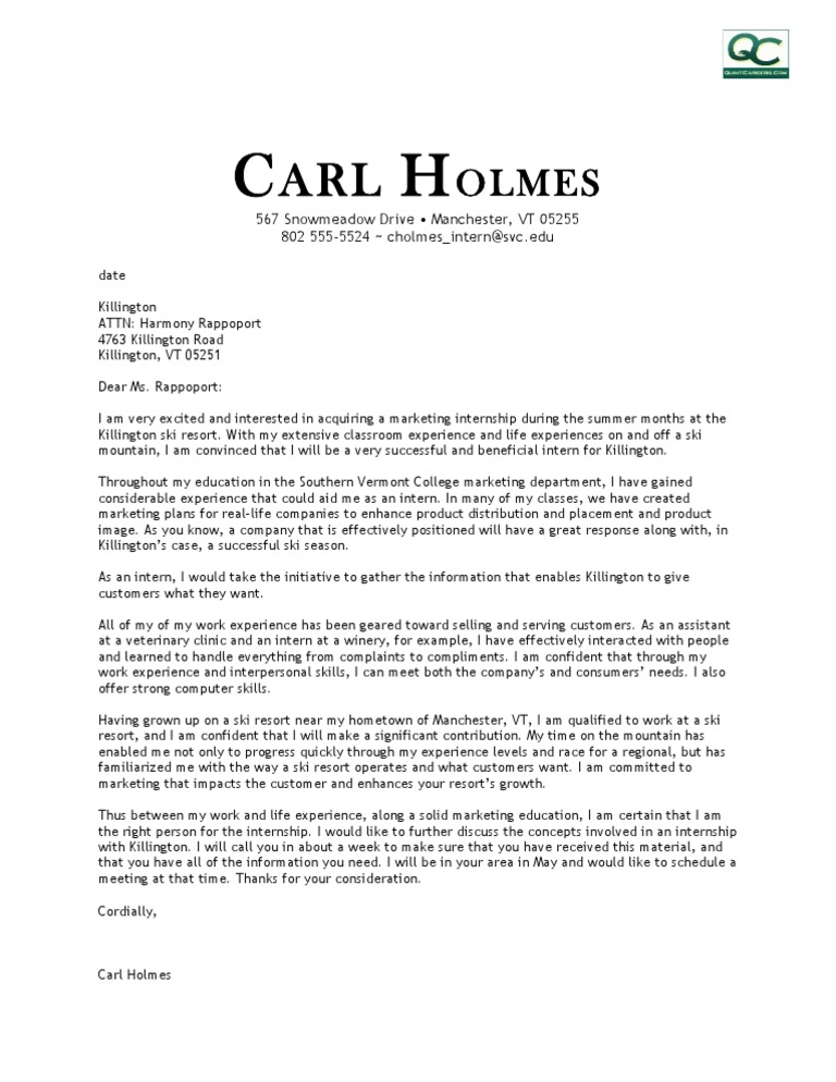 Internship Cover Letter For Marketing : A cover letter is more than just a description of your work history.. It is your first chance to communicate directly to the employer. How to write a cover letter for a summer engineering internship. Don't include these things in your cover letter. No one likes writing them, and recruiters just skim them. Cover letter tips & tricks.